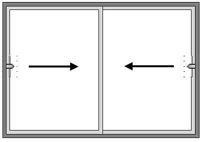 - The point of the arrow on the door leaf is the direction in which the door slides.